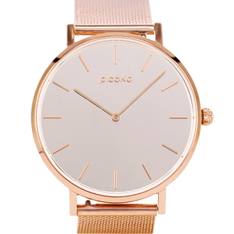 顛覆以往單純錶面材質,首次推出金屬錶面外的錶款。將生活日常事物融入錶款中,達到PICONO希望將手錶戴入生活的理想,同時也賦予簡約設計創新感。 PICONO的平價時尚您值得擁有。 戴上專屬於自己的Mirror T,展現最有自信的一面 以光的三原色作為系列錶款主題,藉由暗色與亮色系的強烈對比傳遞出不同情緒的時尚感,另外也特別推出較為正式的金色與銀色,無論在哪種場合戴起RGB系列錶款都很適合。此次同時也是PICONO第一支不鏽鋼網帶錶款,以相同色系的黑色搭配,為錶錶款增添更多整體和諧感。