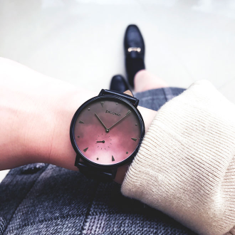 A Week-渲染黑色真皮錶帶手錶 /知性紅