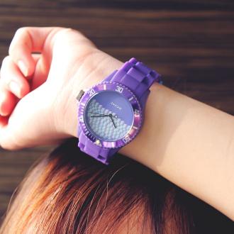 紫色PVC 直徑 39.5mm , 厚 12.70mm 日本機芯 強化玻璃 不銹鋼