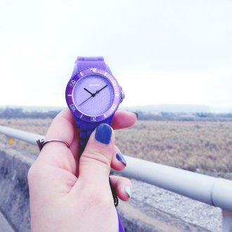 紫色PVC 直徑 39.5mm , 厚 12.70mm 日本機芯 強化玻璃 不銹鋼