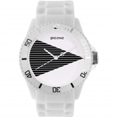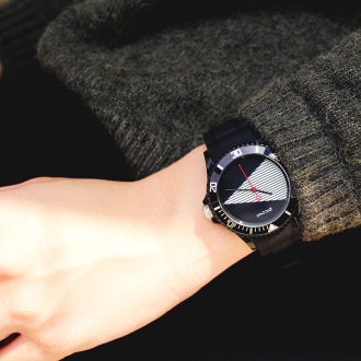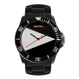 拿掉過多的色彩、裝飾與字釘,只有簡單的黑與白透過線條及幾何圖的交錯在對話,看似樸素卻傳達出錶面與錶針間不簡單的縱錯關係,讓我們一同掉入時間的派對裡吧!