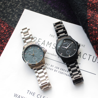 單色系的簡單雙層三眼錶面設計,運用前後重疊方式,為錶款帶入層次感,外觀則是以質感滿分的不鏽鋼材質為主。簡約而時尚的錶款,是每個人都需擁有一支。