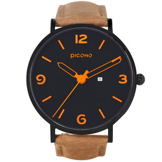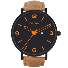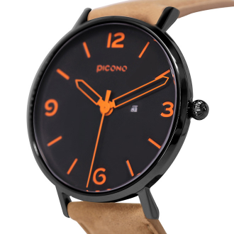 Teen系列以暗色系的深藍色作為錶面底色,再使用亮眼的橘色作為時位與錶針的主要色系,讓整體錶款產生強烈的對比性,錶帶則選用沉穩的瘋馬皮,整體傳遞出男士們陽光紳士的性格。
